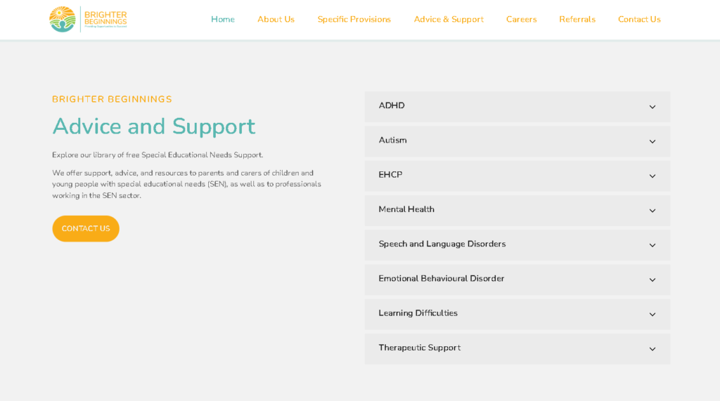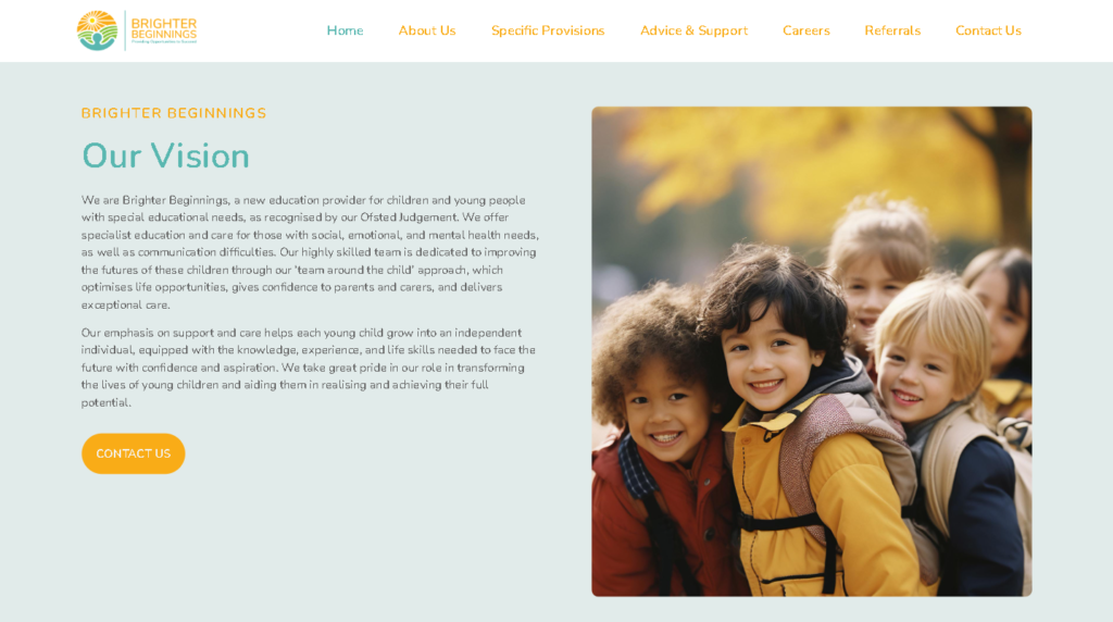 As a digital agency for Brighter Beginnings’ website, our goal was to create an informative and accessible platform that reflects the organisation’s mission to support children and families. The website needed to communicate the importance of specialist education and care while ensuring easy navigation for parents, carers, and professionals.