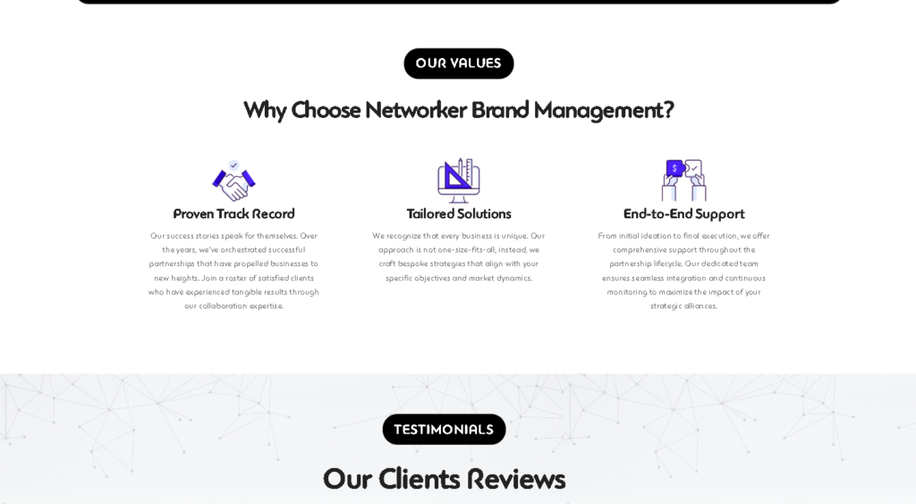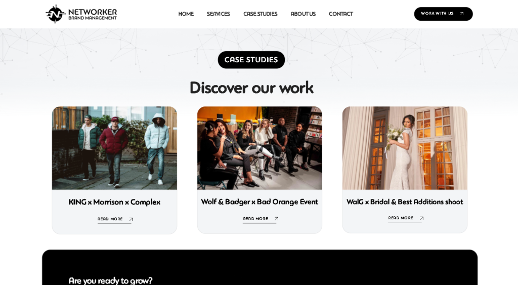 As a digital agency for Networker Brand Management’s website, our goal was to create a professional and engaging digital presence that reflects the company’s expertise in strategic collaborations. The website needed to highlight Networker BM’s services while offering an intuitive and visually compelling user experience.