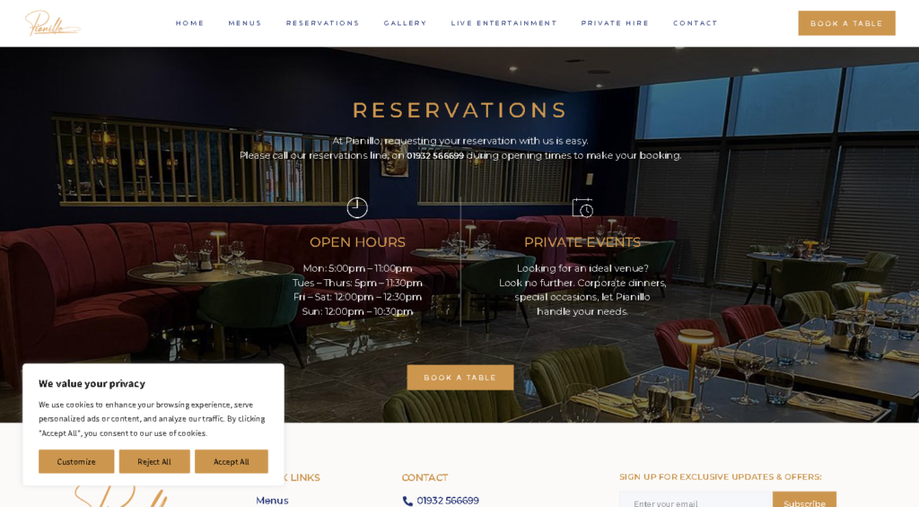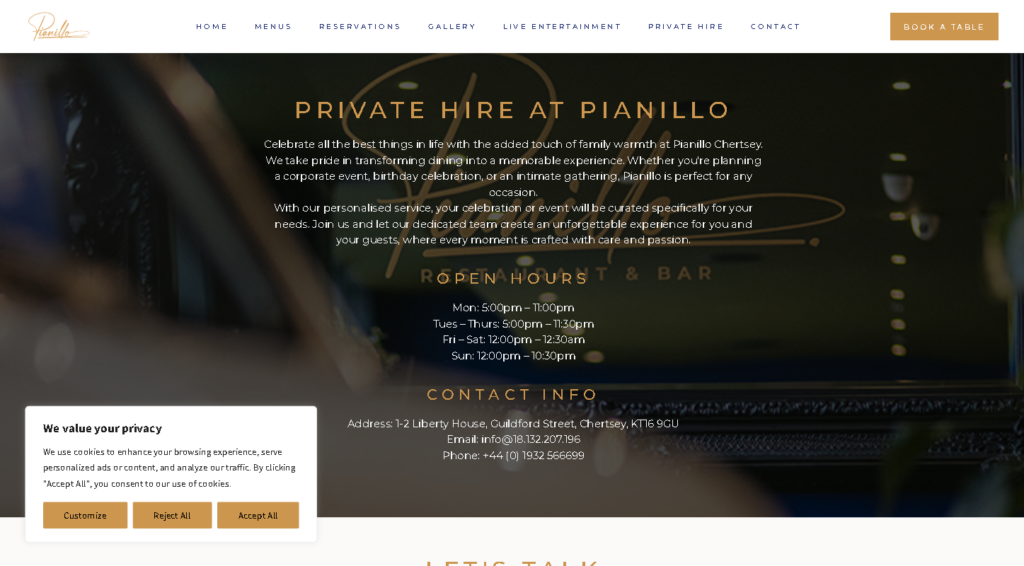 As a digital agency for Pianillo’s website, our goal was to create a refined and immersive digital presence that captures the essence of Italian hospitality. The website needed to seamlessly integrate online reservations, highlight exclusive events, and showcase Pianillo’s signature menu while maintaining an elegant and user-friendly interface.